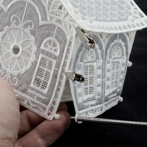 These button clips are perfect for securing different pieces of free-standing lace while the other pieces are being connected.