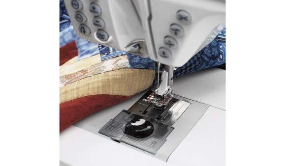 Note: Depending on the weight of your fabric and thread it may be necessary to adjust the needle position to achieve your desired seam allowance. Move the needle to the right to decrease the seam allowance and to the left to increase it. You can safely move the needle three steps in either direction, but not more.