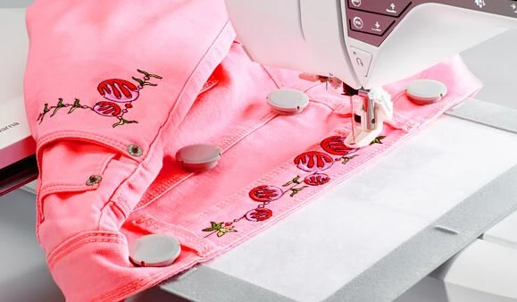 Hooping ready-to-wear garments is difficult or impossible due to seams, narrow areas or buttons/rivets. When using the Metal Hoop 180x130mm hooping won’t be a problem!