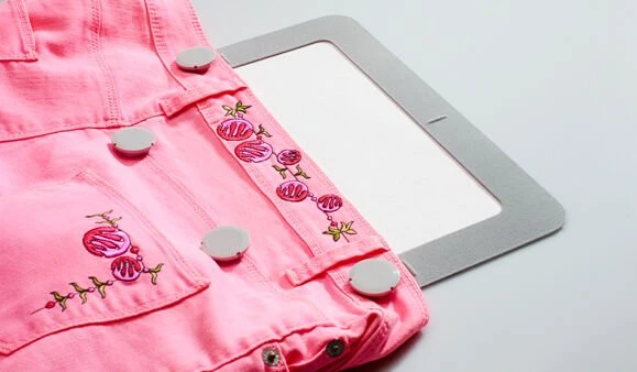 Embroidering several designs after each other or doing endless embroideries is easy, just remove the magnets and move the fabric. Ready to embroider the next design in no time!